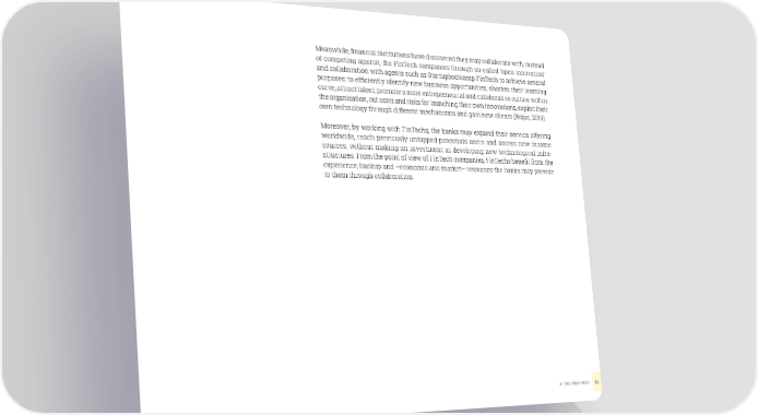 Meanwhile, financial institutions have discovered they may collaborate with, instead of competing against, the FinTech companies through so-called ‘open innovation’ and collaboration with agents such as Startupbootcamp FinTech to achieve several purposes: to efficiently identify new business opportunities, shorten their learning curve, attract talent, promote a more entrepreneurial and collaborative culture within the organization, cut costs and risks for launching their own innovations, exploit their own technology through different mechanisms and gain new clients (Rojas, 2016). Moreover, by working with FinTechs, the banks may expand their service offering worldwide, reach previously untapped potentials users and access new income sources, without making an investment in developing new technological infra- structures. From the point of view of FinTech companies, FinTechs benefit from the experience, backup and –economic and market– resources the banks may provide to them through collaboration. A TWO-WAY PATH 15