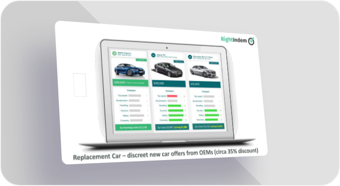 Replacement Car – discreet new car offers from OEMs (circa 35% discount) InsurTech | RightIndem SLIDES Page 16 Page 18