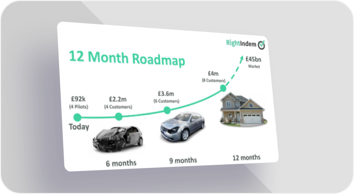 InsurTech | RightIndem SLIDES Page 20 Page 22£45bn 12 Month Roadmap Market £4m (8 Customers) £92k £2.2m £3.6m (6 Customers) (4 Pilots) (4 Customers) Today 6 months 9 months 12 months