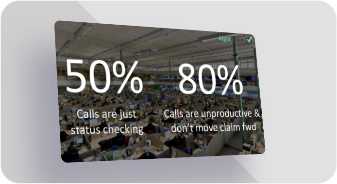 50% 80% Calls are just Calls are unproductive & status checking don’t move claim fwd
