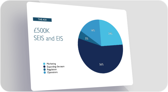 THE ASK £500K 16% 24% SEIS and EIS 5% Marketing 56% Expanding the team Regulation Operations