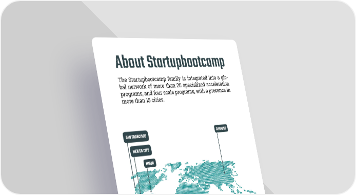 About Startupbootcamp The Startupbootcamp family is integrated into a glo- bal network of more than 20 specialized acceleration programs, and four scale programs, with a presence in more than 15 cities. #sbcDemoDay TABLE OF CONTENTS
