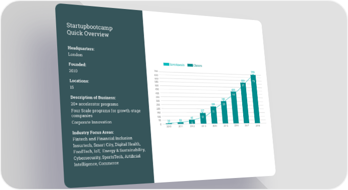 Startupbootcamp Quick Overview Headquarters: London Founded: Investments Classes 700 709 2010 650 600 559 75 Locations: 550 57 500 435 15 450 400 44 Description of Business: 350 281 300 28 20+ accelerator programs 250 189 Four Scale programs for growth-stage 200 117 21 companies 150 100 45 13 Corporate Innovation 50 10 18 5 0 2010 2011 2012 2013 2014 2015 2016 2017 2018 Industry Focus Areas: Fintech and Financial Inclusion Insurtech, Smart City, Digital Health, FoodTech, IoT, Energy & Sustainability, Cybersecurity, SportsTech, Artificial Intelligence, Commerce