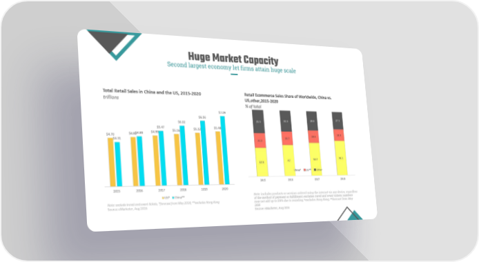 Huge Market Capacity Second largest economy let firms attain huge scale Note: includes products or services ordered using the internet via any device, regardless of the method of payment or fulfillment; excludes travel and event tickets; numbers may not add up to 100% due to rounding; *excludes Hong Kong; **forecast from May 2016 Source: eMarketer, Aug 2016