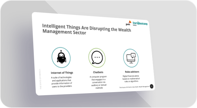 Intelligent Things Are Disrupting the Wealth Management Sector CH TE Internet of Things Chatbots Robo-advisors N I F F A suite of technologies A computer program Digital financial advice O and applications that that engages in a based on mathematical TE TA provide information of conversation via rules or algorithms S E users to the providers auditory or textual TH methods The Future of FinTech in Asia Pacific: Wealth Management 60